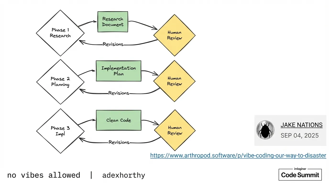 Nations described Netflix’s approach with their 5-million-line codebase: “No context window has access that can hold it.” His team developed a three-phase process: research (feeding everything upfront—architecture diagrams, design docs, Slack threads, runbooks—then compressing it into a single research document), planning (specifying exact function signatures, type definitions, which files to modify), and only then implementation. “This phase should be pretty simple,” Nations noted, “because you have a clear spec.”