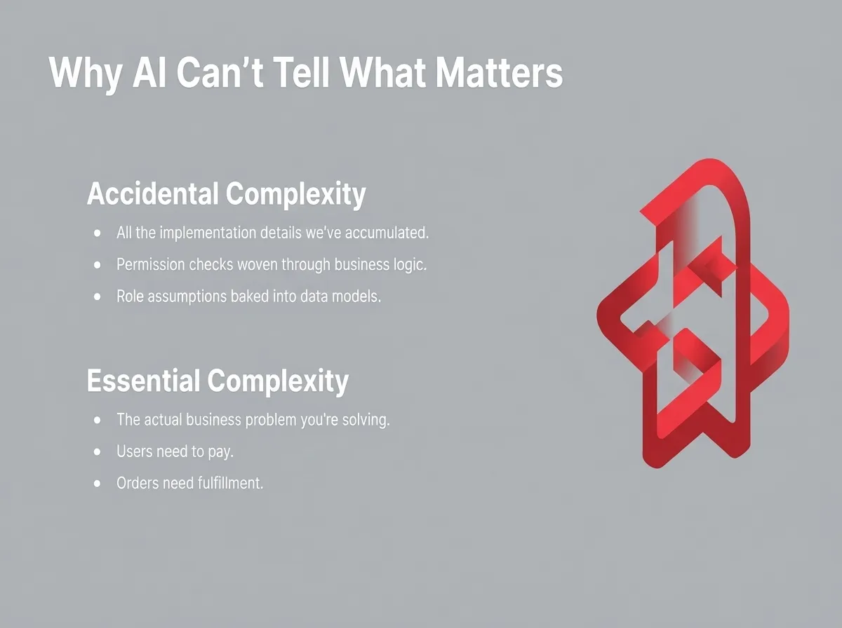 He speed ran through some complexity greatest hits — riffing off No Silver Bullet — he started fully channeling Rich Hicky’s glorious 2011 “Simple made Easy” concepts for the AI age.