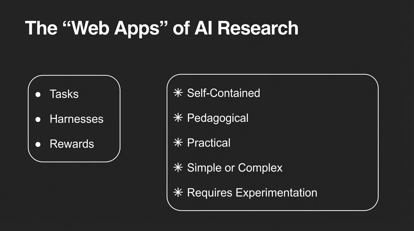 Environments are the fundamental unit for reasoning about AI systems. Web frameworks made app development accessible; now environment hubs and verification toolkits are “increasing the accessibility of doing AI research,” Brown observed. The vision: an “open superintelligent stack”—composable, shareable environments for collective progress.