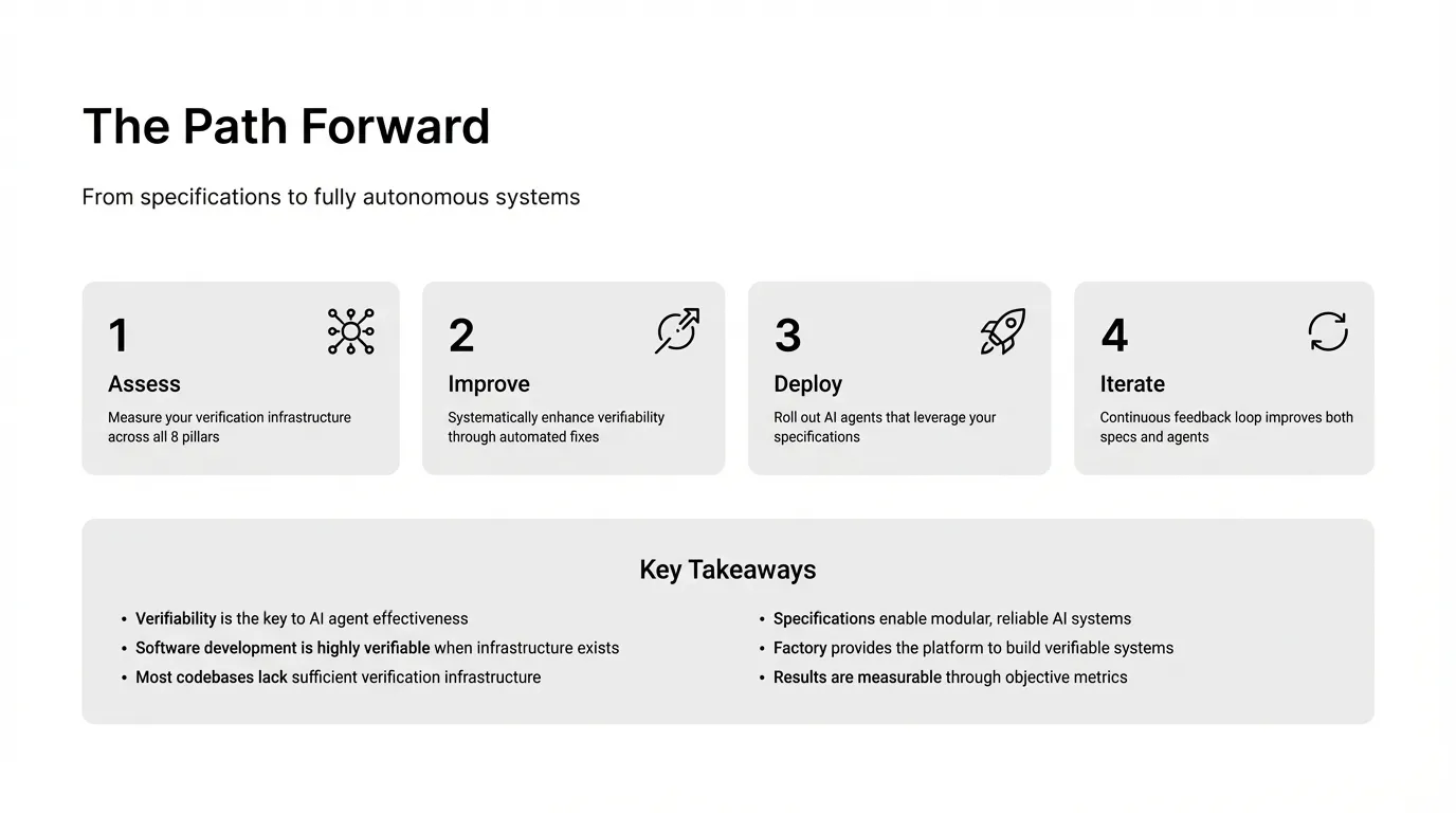 Reyes made the business case explicit. At Factory AI, they’ve built their entire agent-ready framework around verifiability. “Invest in the environment feedback loop,” he urged. “One opinionated engineer can change the velocity of the entire business.” The rate limiting step is “your organization’s validation criteria.”