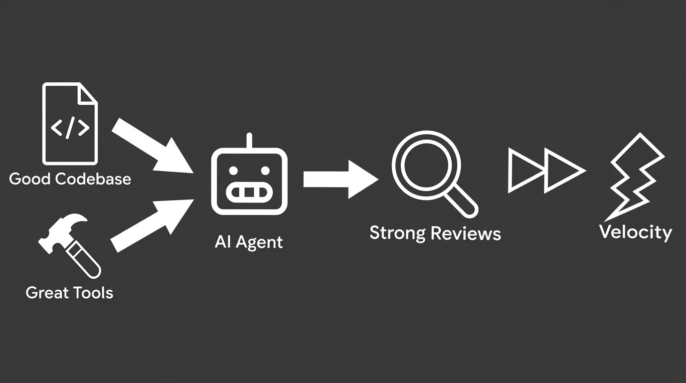 The virtuous cycle: good codebases and great tools enable AI agents to provide strong reviews, which leads to velocity. Same investment, opposite outcomes.