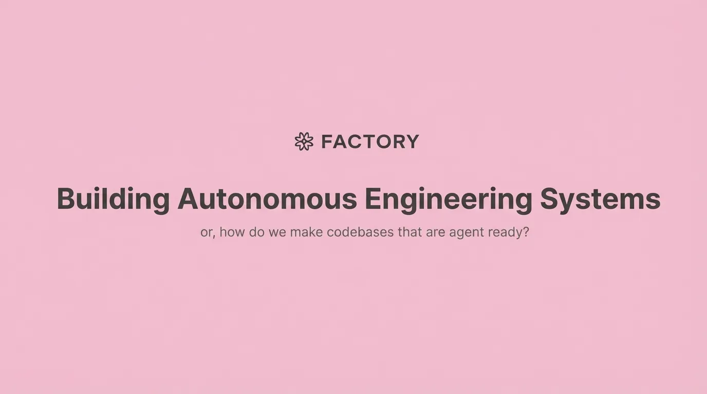 Key Point: Introduces Factory’s main thesis - the challenge isn’t just building AI agents that can code, but rather preparing and structuring codebases to be “agent ready” so autonomous systems can effectively work with them. This reframes the AI engineering problem from agent capability to codebase compatibility.
