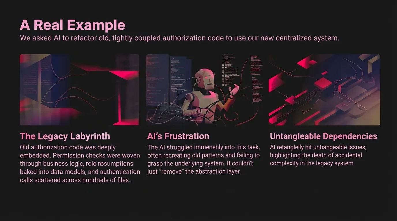 - Subtitle: “We asked AI to refactor old, tightly coupled authorization code to use our new centralized system.”